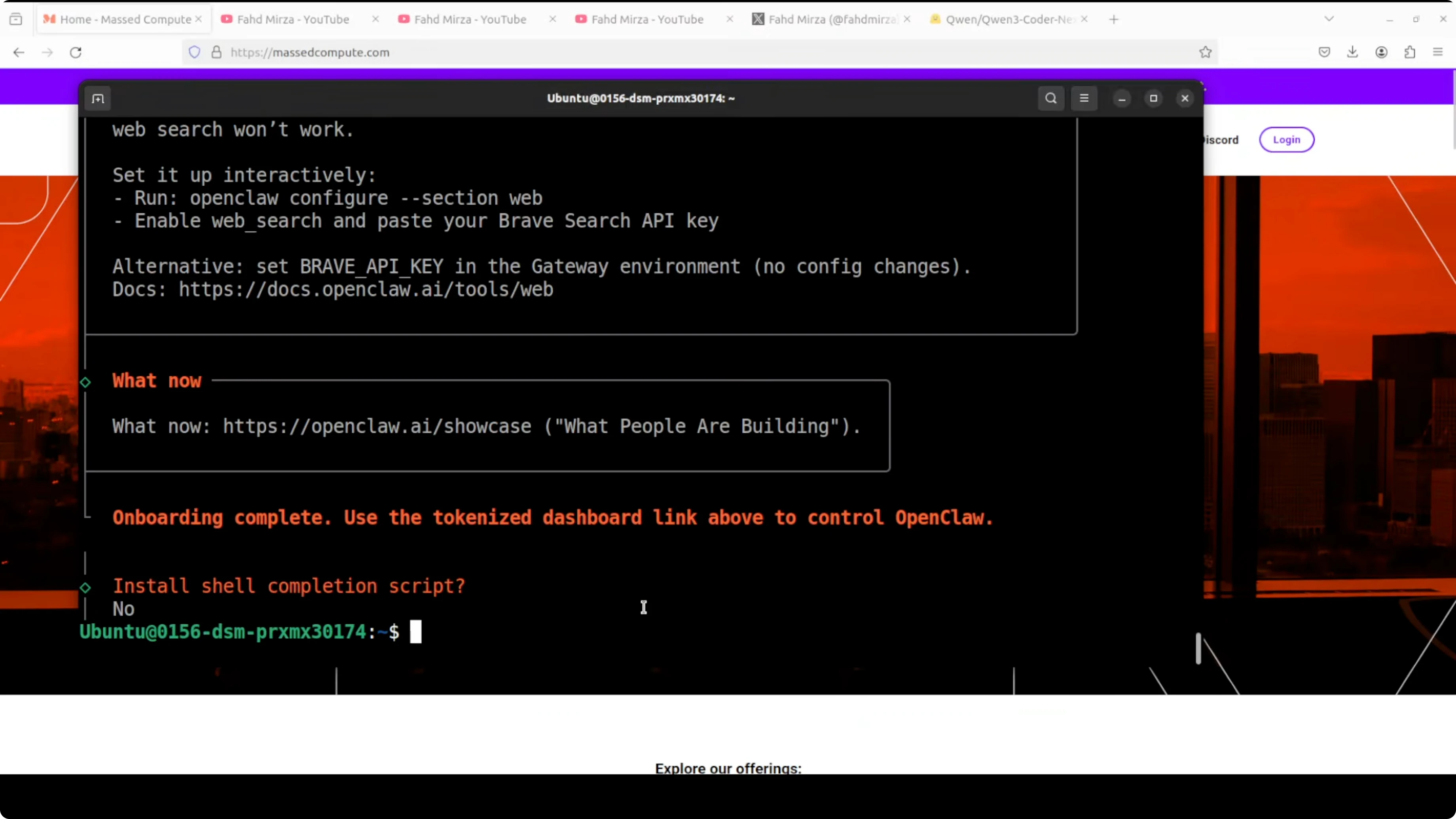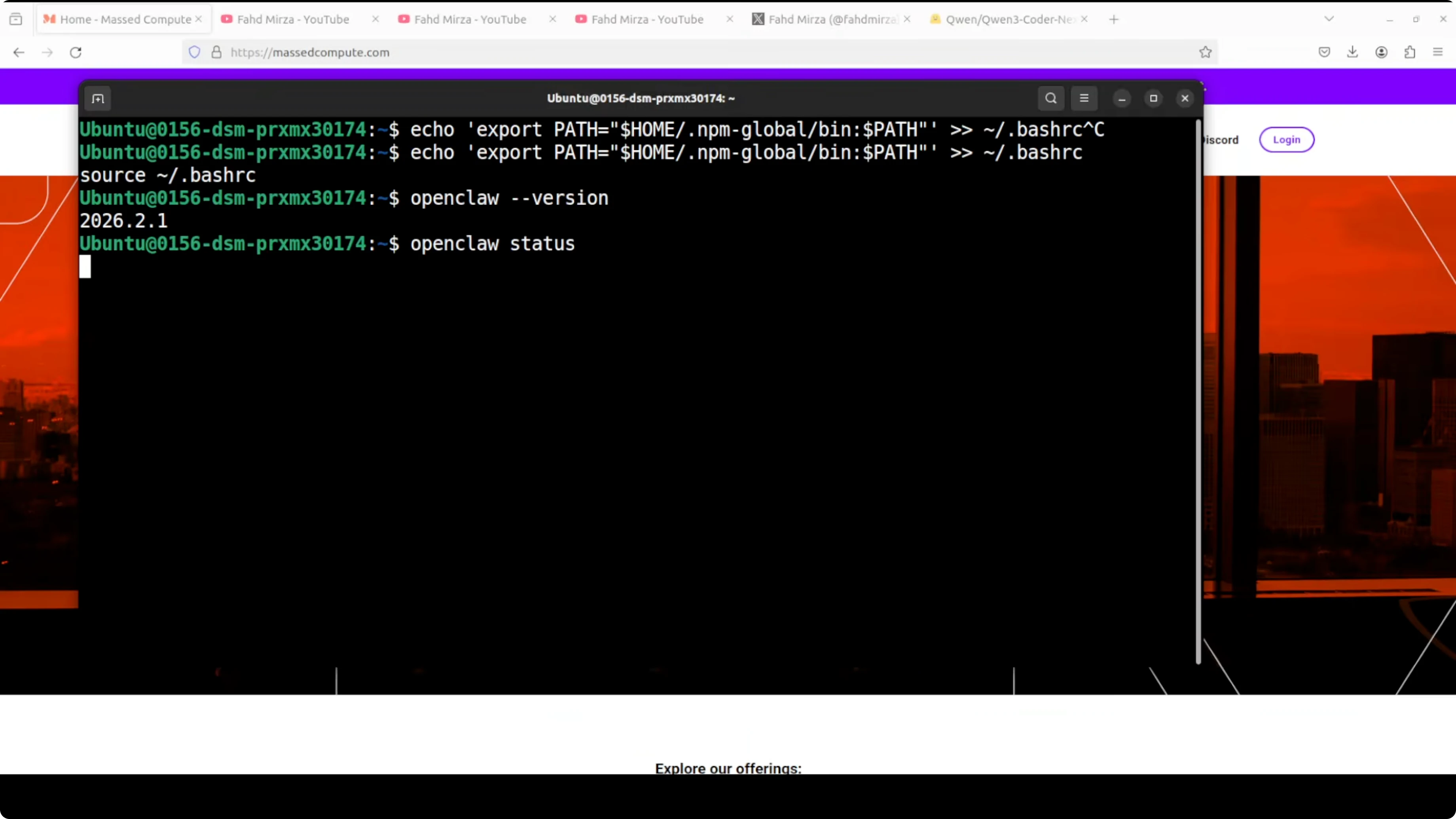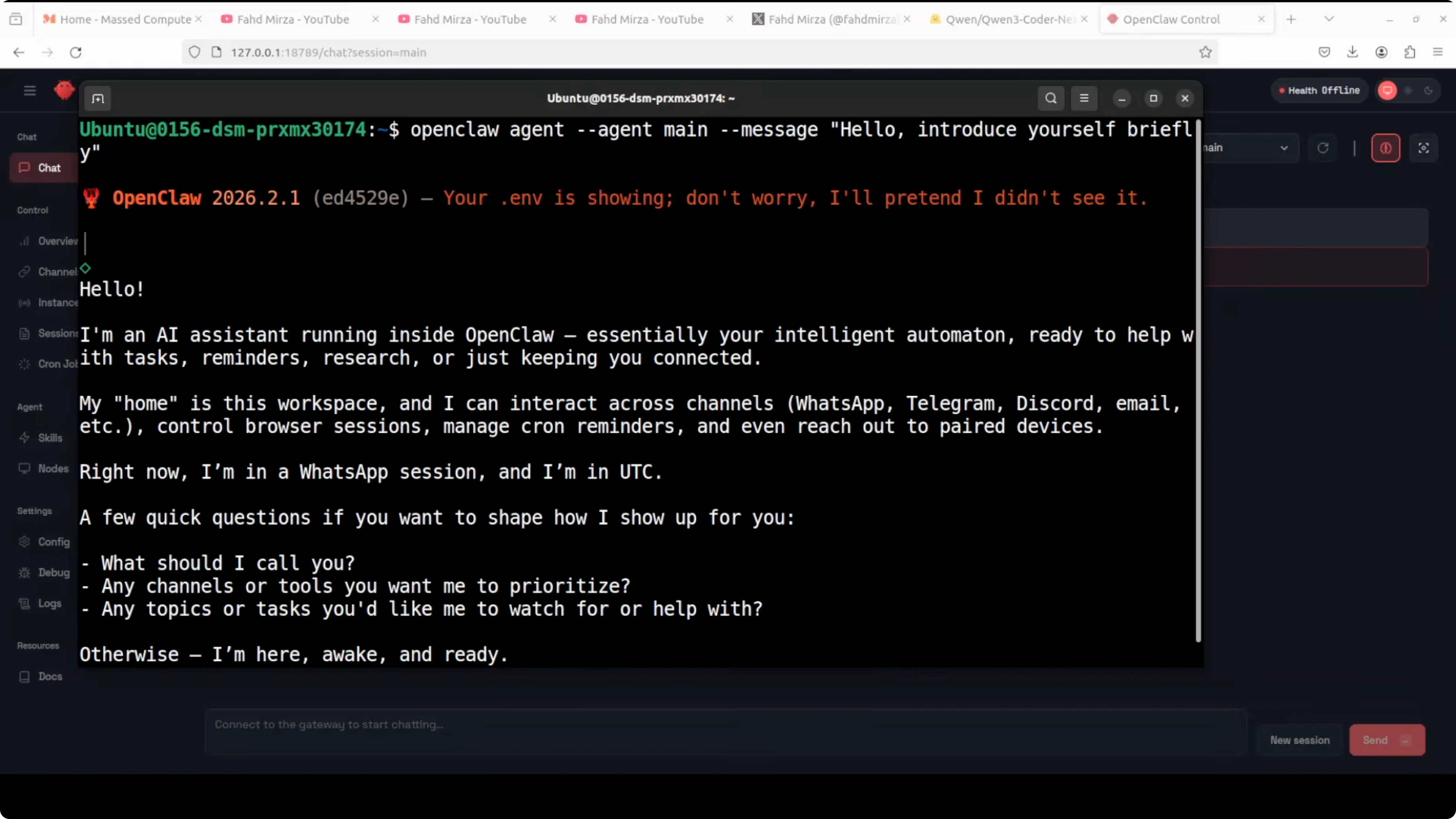 openclaw status. You should see that your model is loaded. - The dashboard GUI is also available. You can chat with it if you like, but I prefer the terminal with OpenClaw.