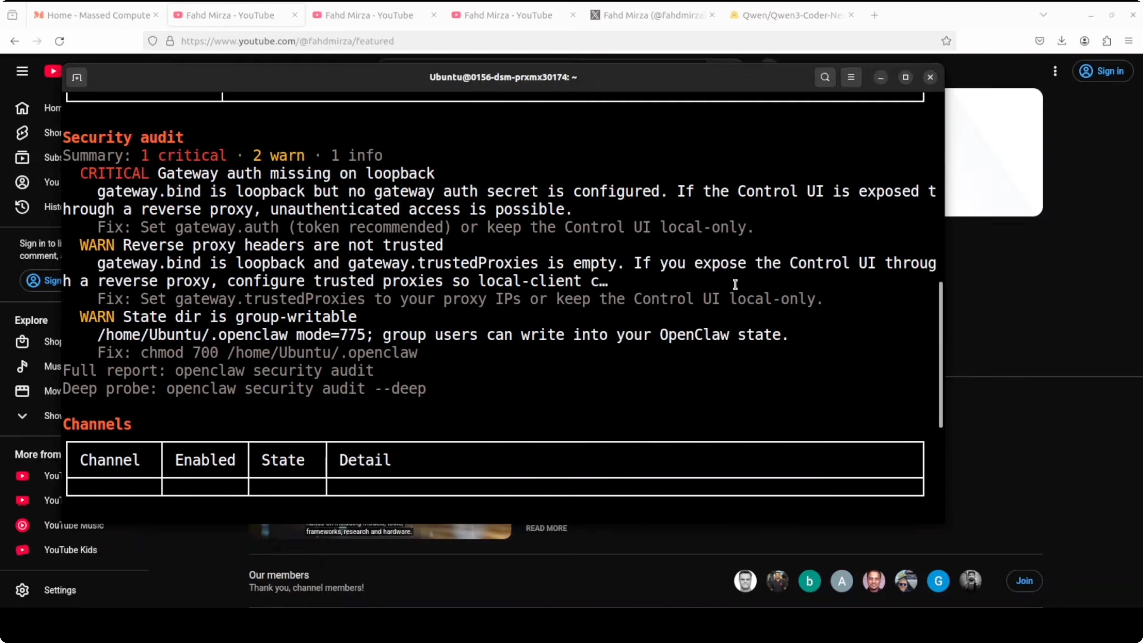 openclaw status. - It shows what is running. You can ignore warnings for now, but not in production - fix permissions and security.