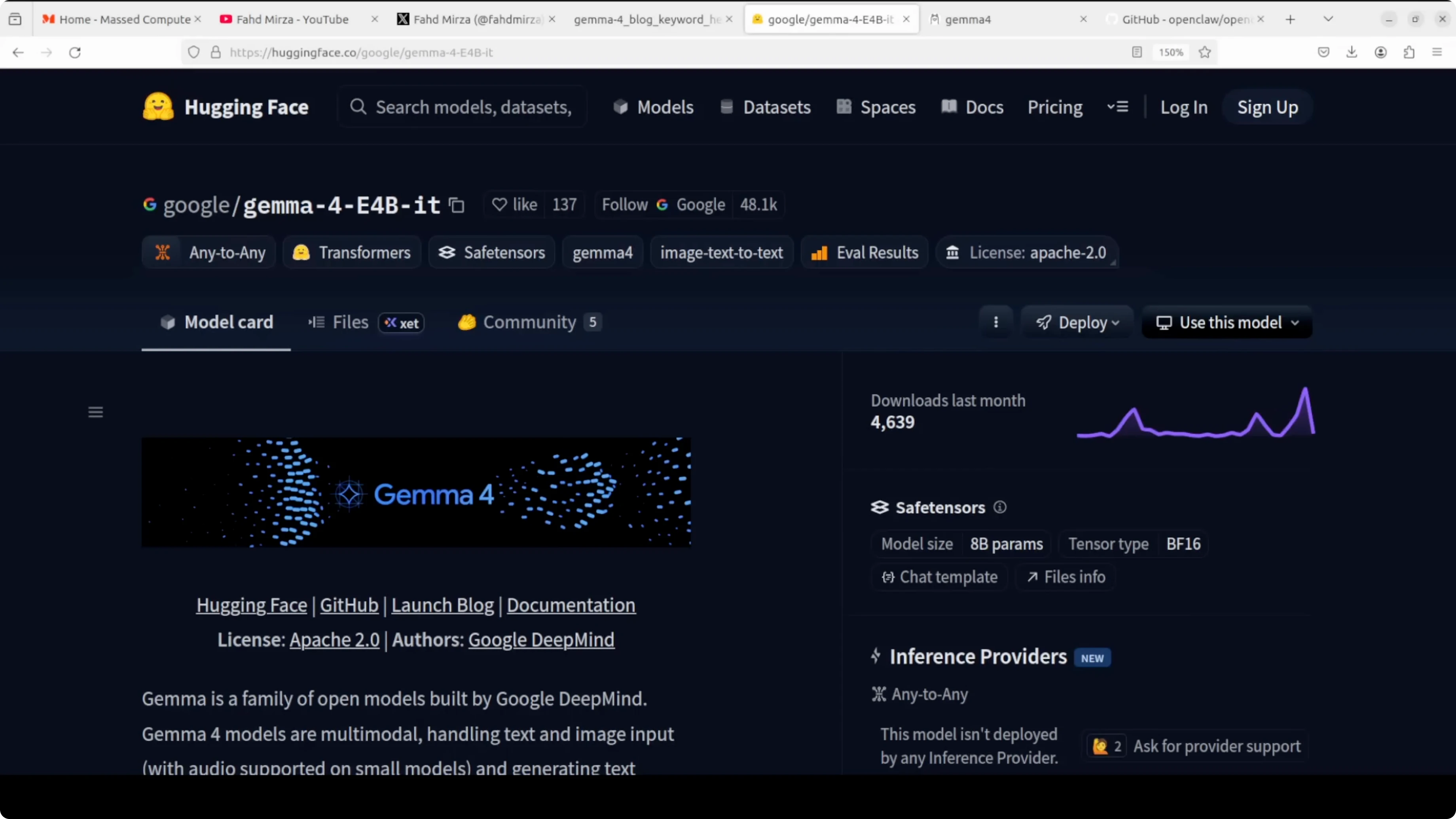 I am choosing the E4B flavor of Gemma 4. Gemma 4 consists of four models in this family, and I have already shown the 31 billion version in a separate session. Here I am focused on E4B.