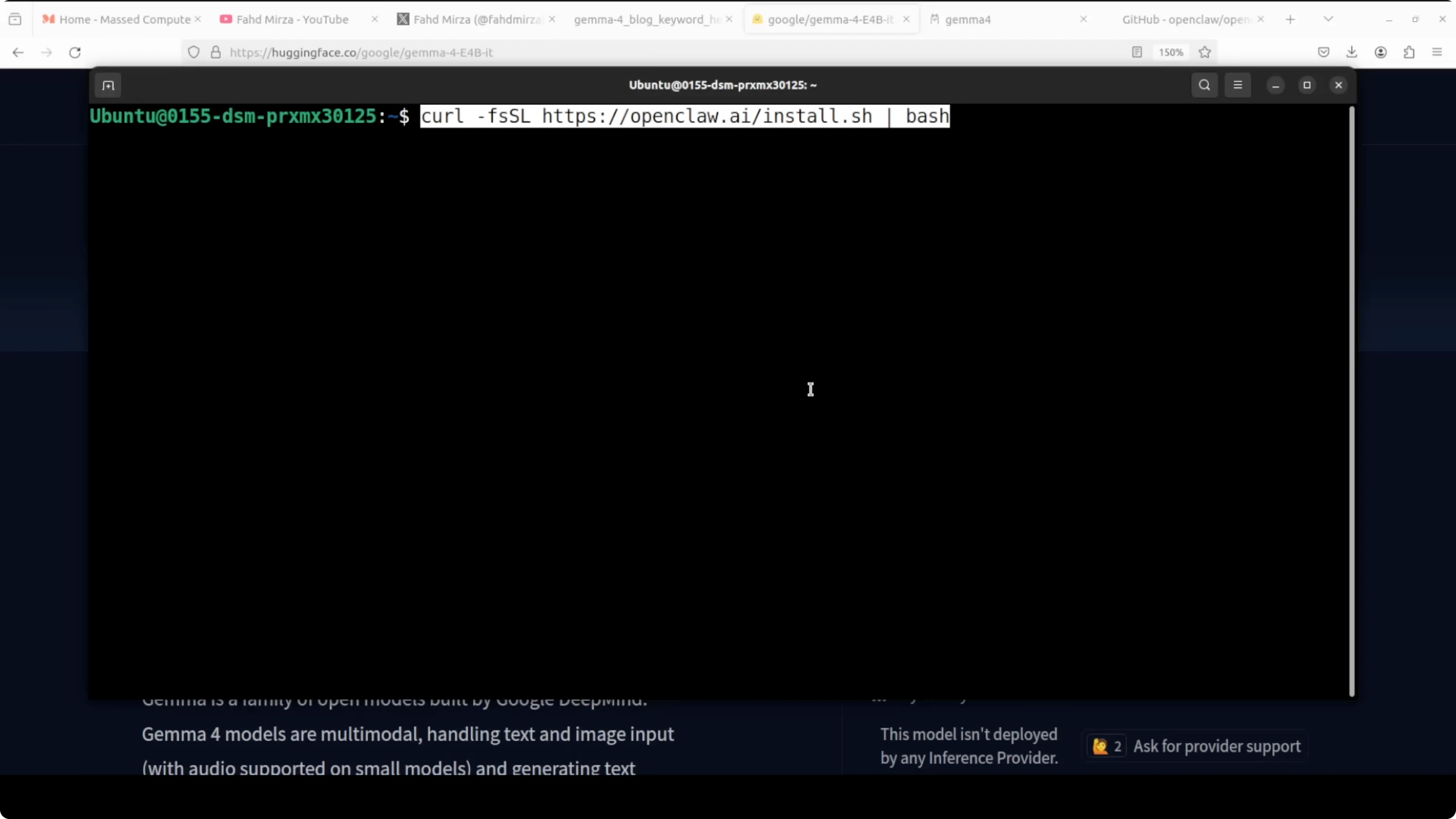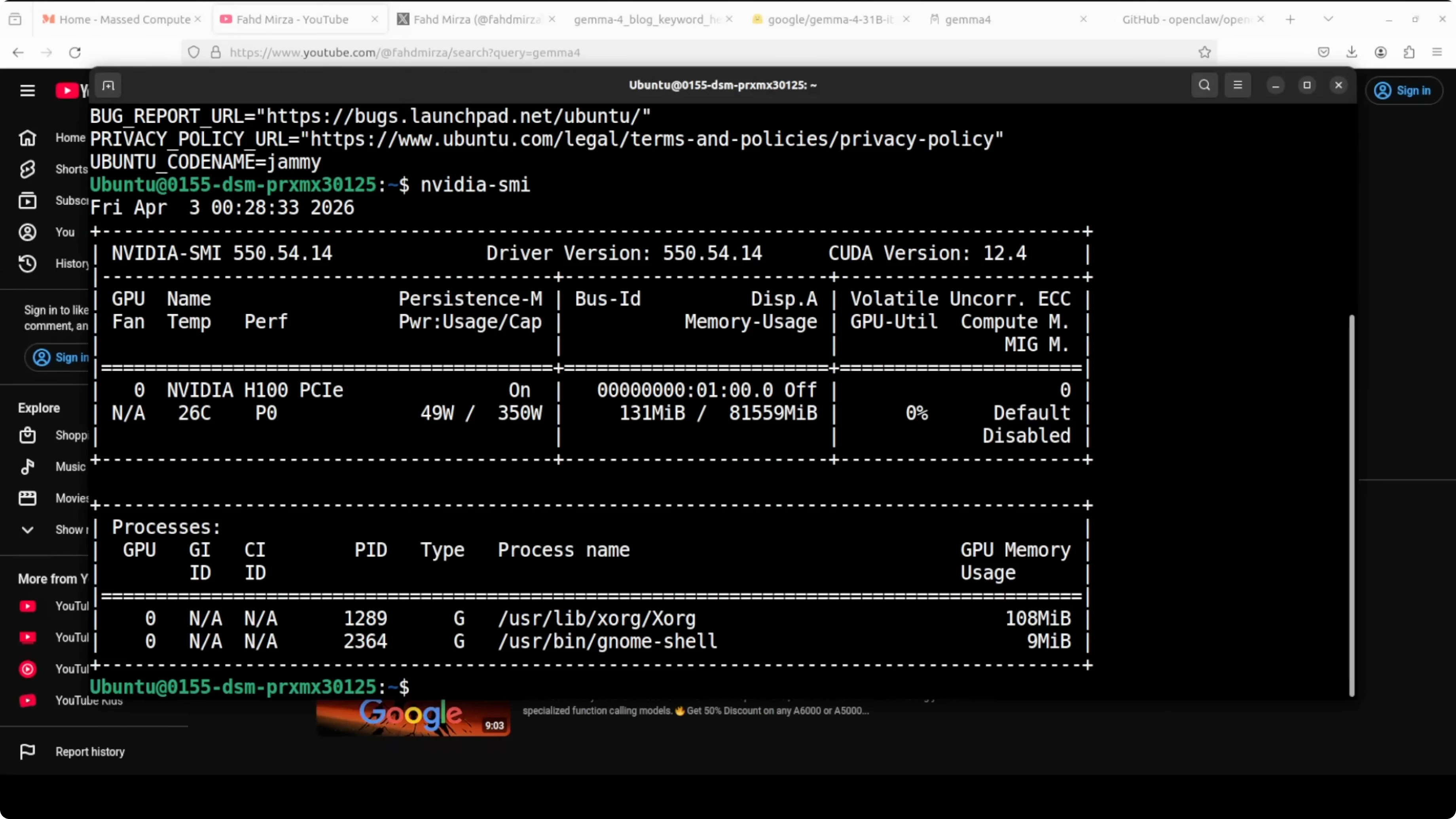 Today is a Gemma day. I am going to install and run the Gemma 4 E4B model with OpenClaw by using an Ollama based model. I am on Ubuntu with an Nvidia H100 that has 80 GB of VRAM, and I will show VRAM consumption as we go.