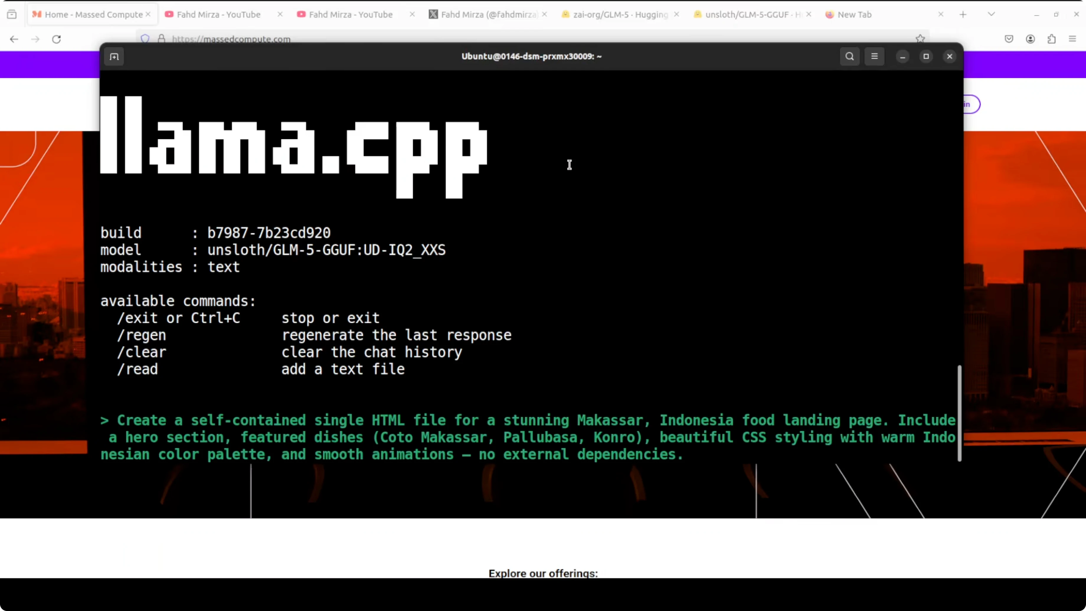 It took around 1 hour to generate all of this code. I saw about 3.1 tokens per second. Pretty low, but the code quality was solid. I pasted it into VS Code, reloaded the page, and got a responsive landing page with headings, sections, icons, and signature dishes, along with recipe-like details such as serves and simmer time. This was a 2-bit quantized model running on one GPU.