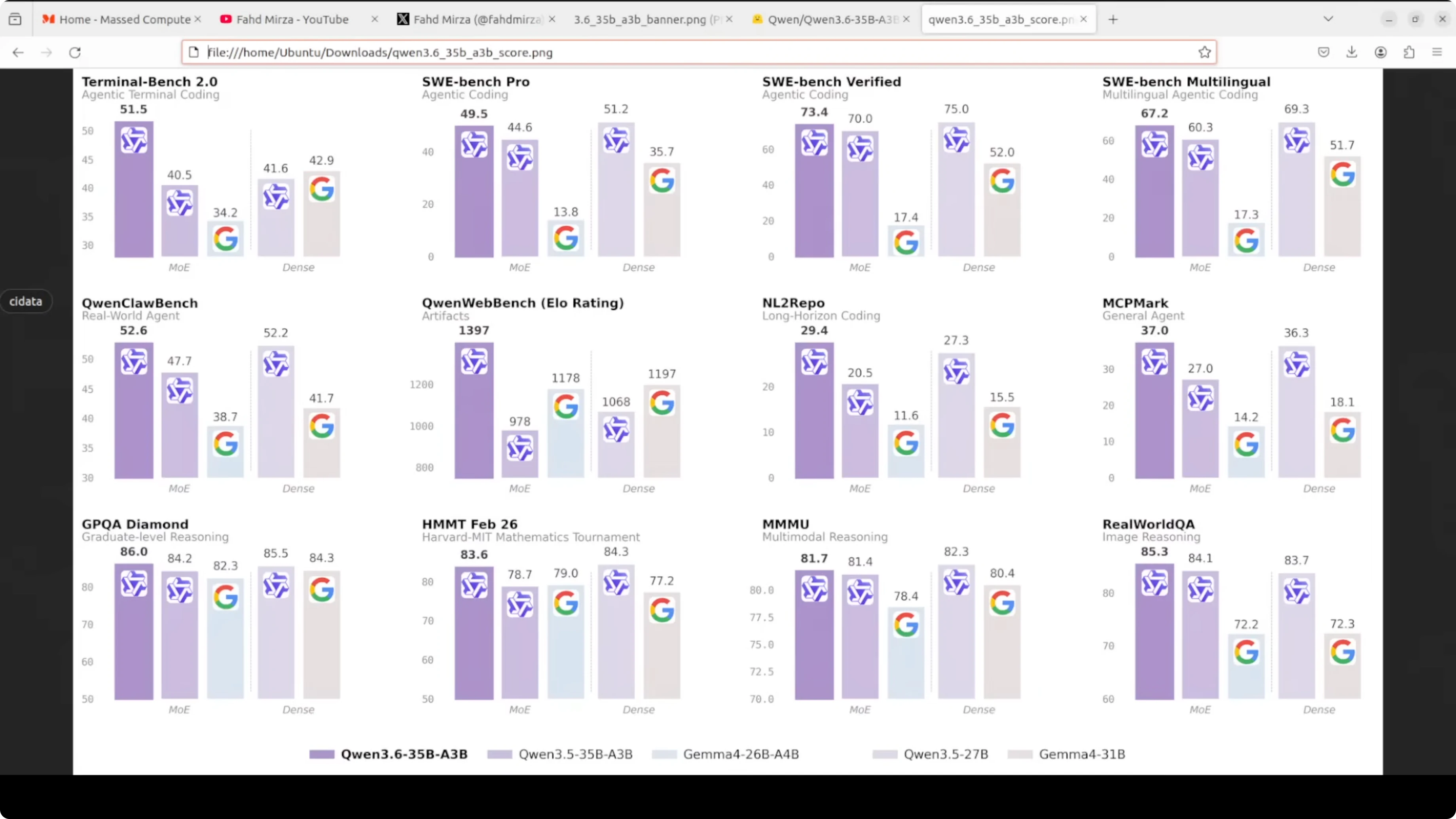 A larger dense 27 billion class model can still edge it on some general agent tasks. On the vision side it is competitive on spatial intelligence, document understanding, and video reasoning. The picture today is efficient multimodal, strong at agent coding, and fully open weights.