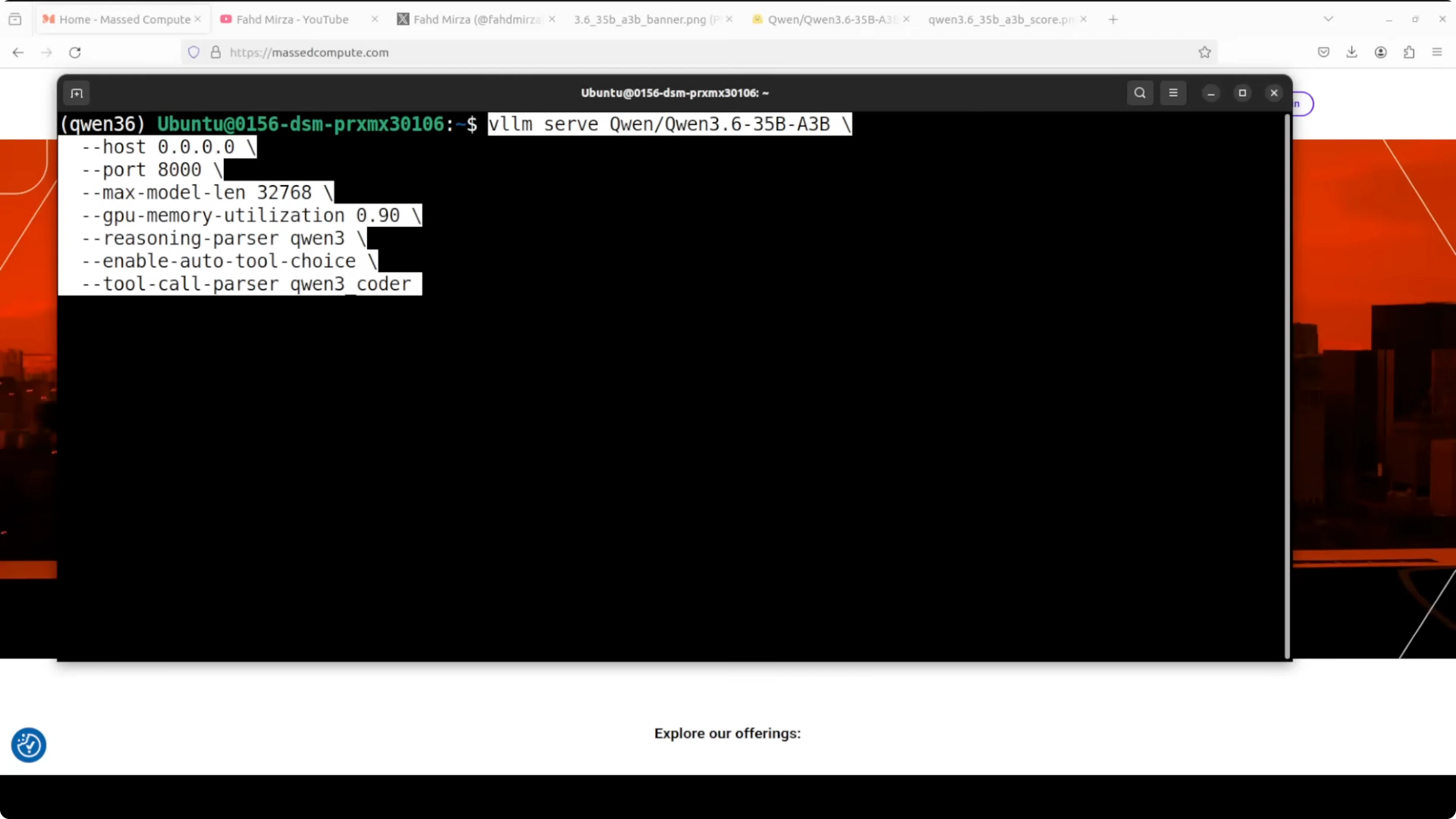 I cap the context at 32k and set GPU memory utilization to 0.90 to leave a small buffer. I also enable the reasoning parser tuned for Qwen and turn on tool calling to make it useful inside agent frameworks.