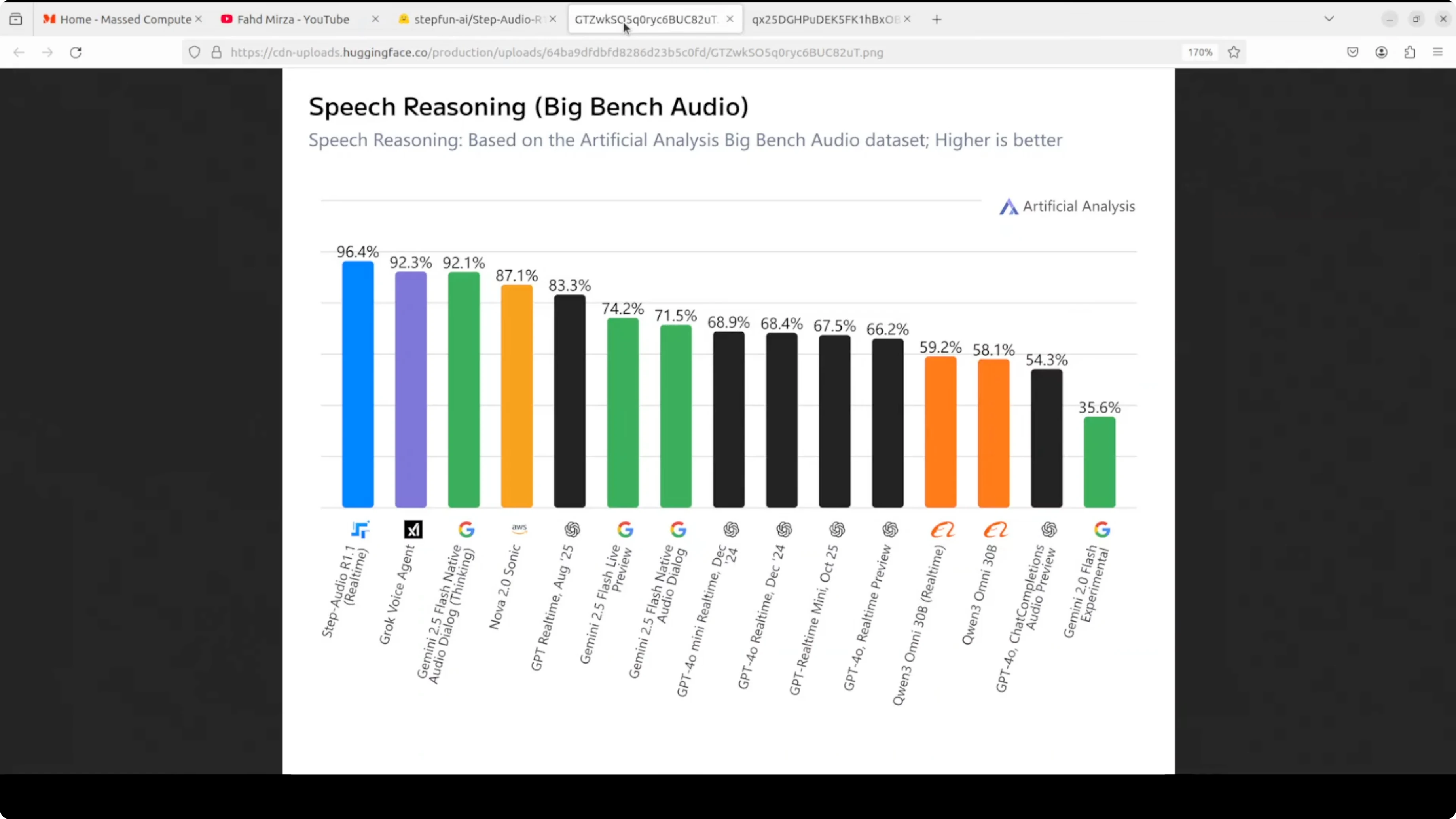 What makes it especially interesting is how it reasons. Instead of converting speech to text and thinking about the transcript, which apparently degrades performance as you scale up, R1.1 reasons directly on the acoustic representation, the raw sound patterns themselves, through a self distillation process. The longer deliberation actually makes it better, not worse. The payoff is state-of-the-art benchmark results and a model that genuinely improves with more compute at inference time.