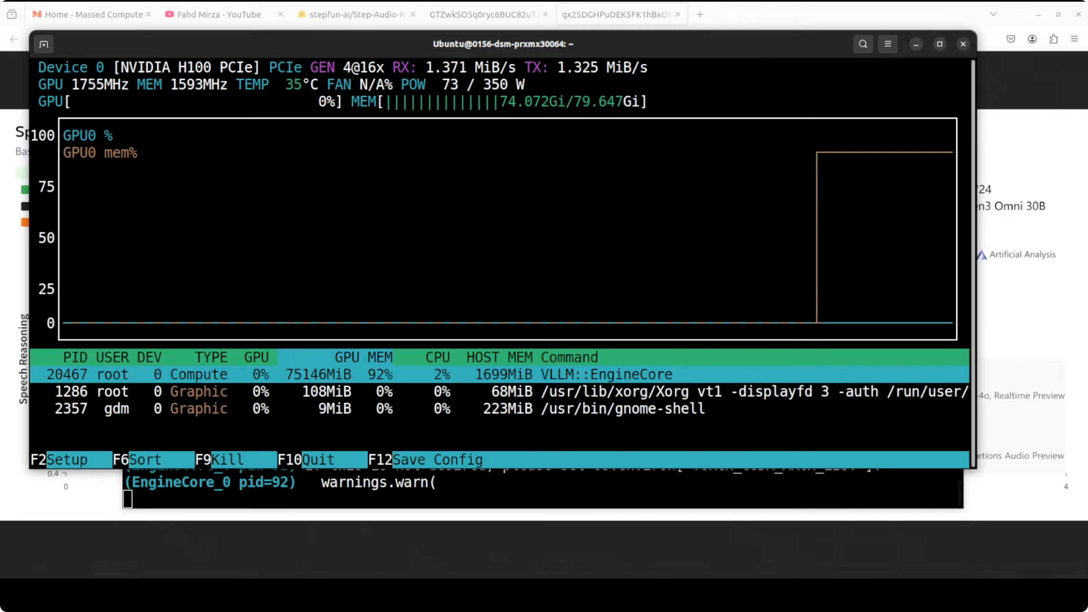 - Final VRAM consumption reached over 75 GB.