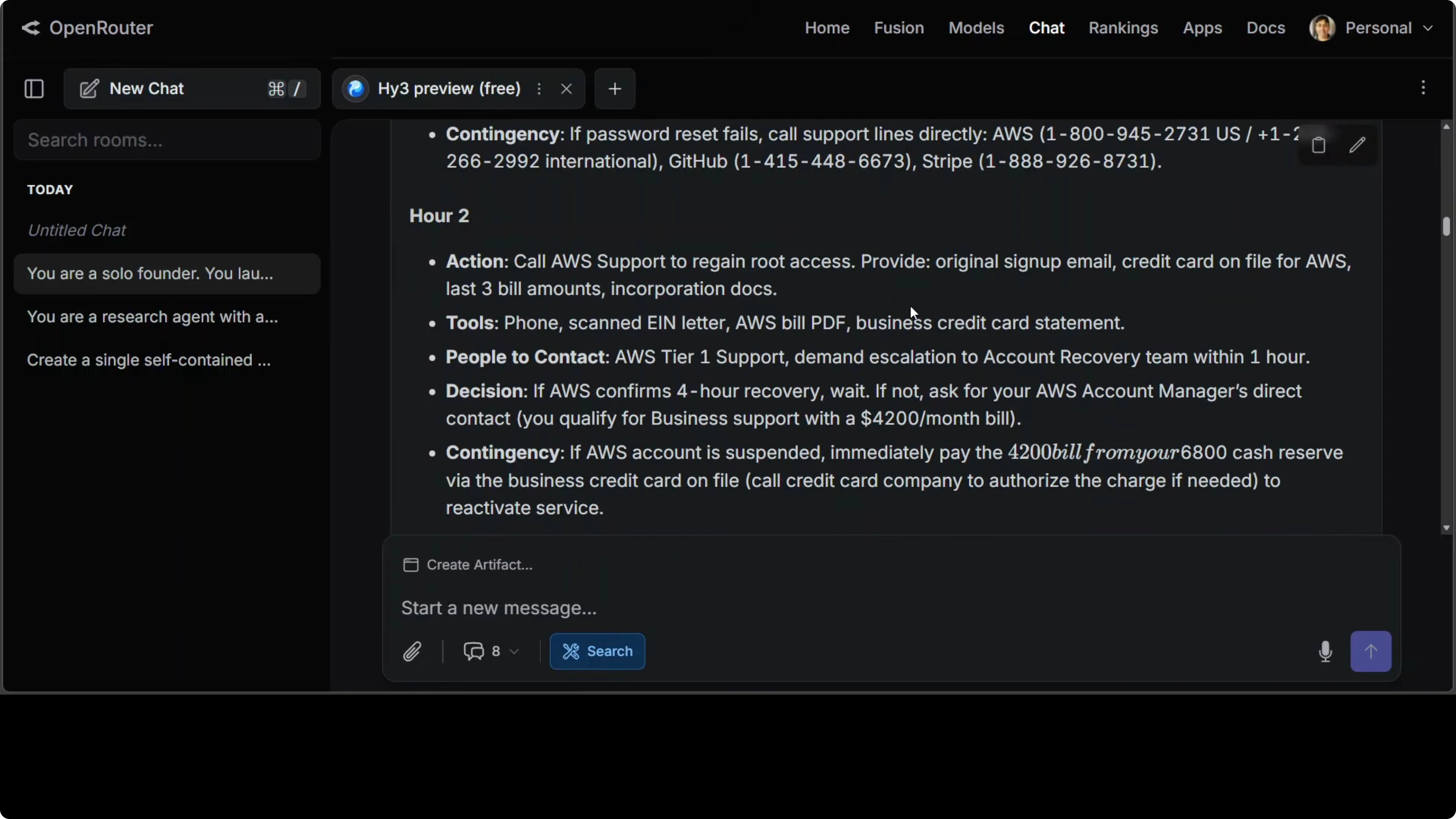 The response was not a generic startup advice listicle. It read like a forensically detailed survival manual with specific phone numbers, legal frameworks like CFAA, named tools at every step and a cash flow analysis that correctly identified burn at roughly 1.8x MRR on AWS before any fixes. What separated it from a weak model response was the sequencing.