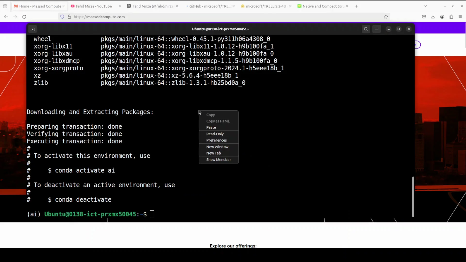I am going to use this Ubuntu system and I have one GPU card NVIDIA 6000 with 48 GB of VRAM. Microsoft has also shared this repo, so I am just going to clone it. Then we need to run this setup script from the root of the repo. Everything is installed.