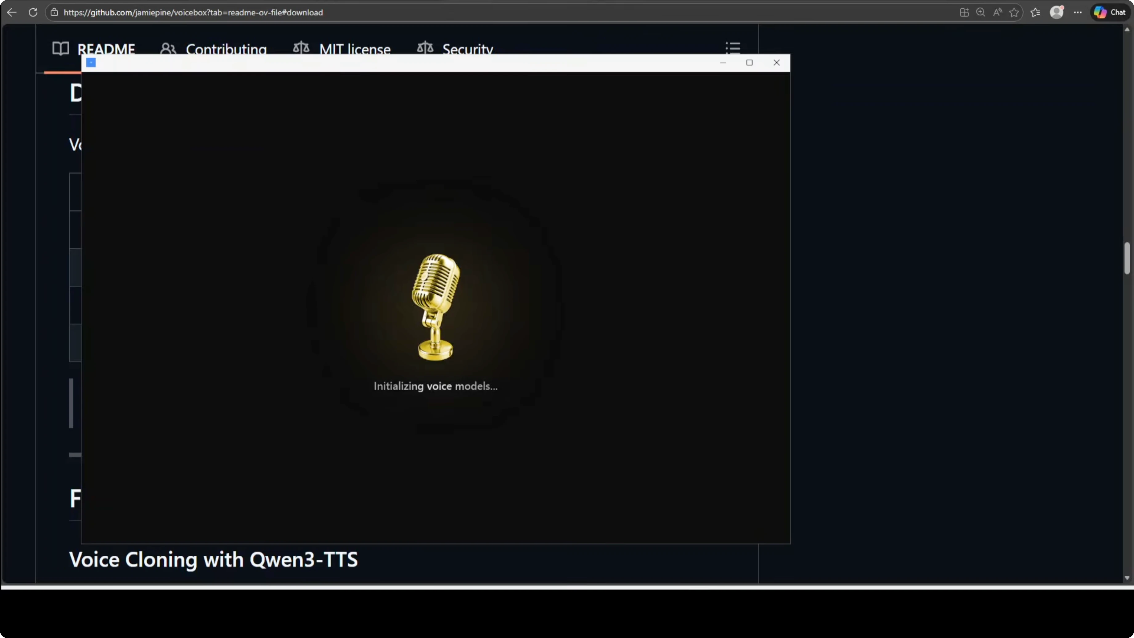 Launch Voicebox after installation. It warms up the system, calibrates, and becomes ready.
