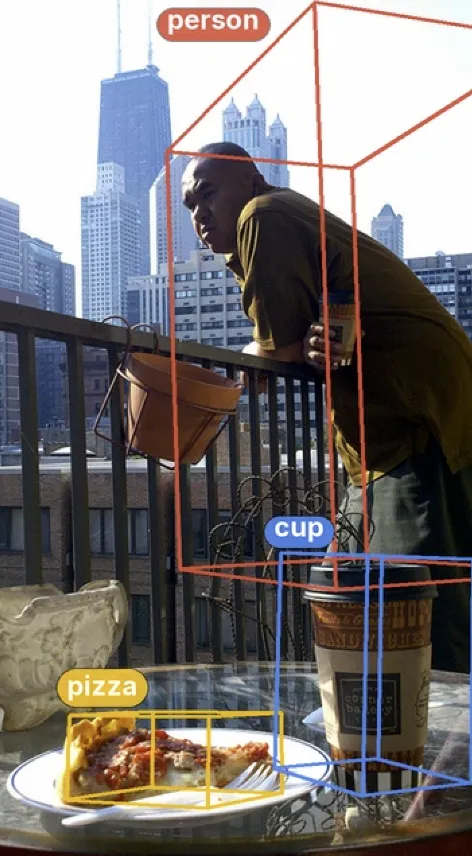 The system works in homes, offices, streets, and outdoor spots like parks or cafes. Text prompts can find chairs in a living room, cars on the road, or signs on a sidewalk. The same model can also lift 2D boxes into full 3D boxes.
